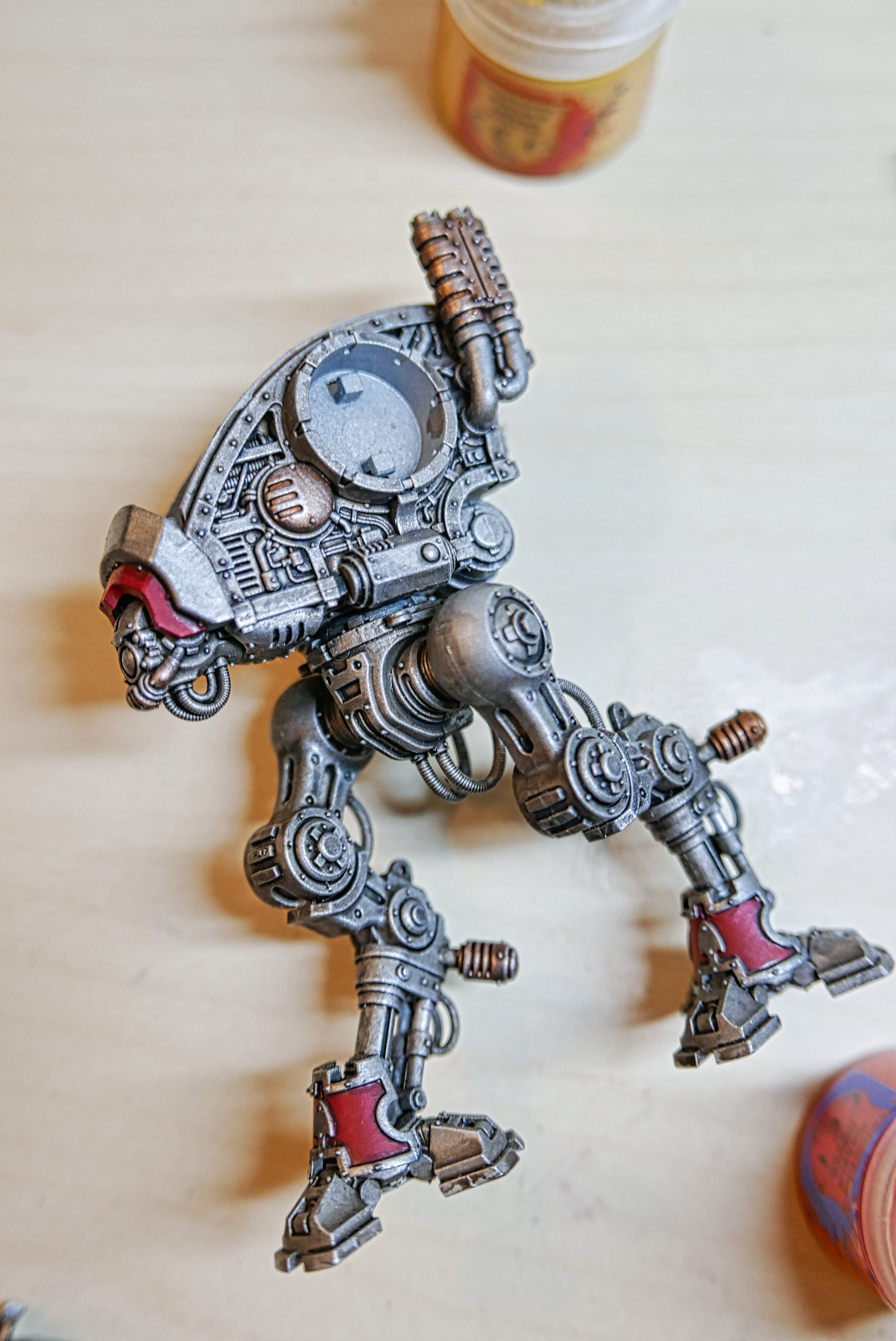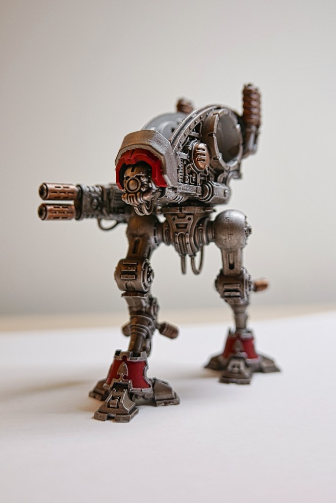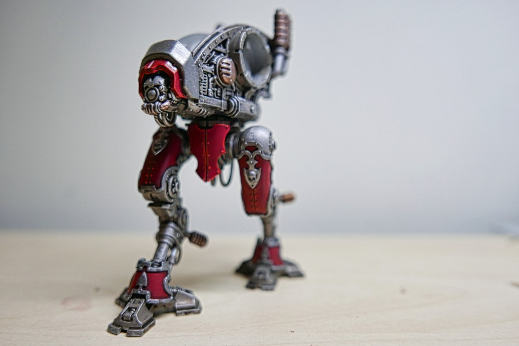 The model is easy to build and I love the predatory look GW has given them by inverting the joint of the leg. I chose House Raven as my paint scheme since they’re so closely aligned with the Adeptus Mechanicus and share a similar color palette.